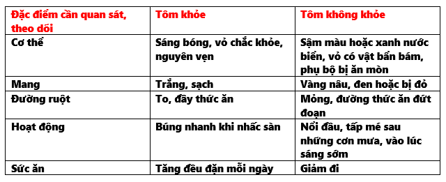 Người chăn nuôi có thể đánh giá sức khỏe của tôm dựa vào các dấu hiệu sau