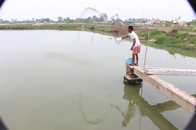 Ông Long cho cá ăn thêm một chút thức ăn bổ sung dinh dưỡng khi cần