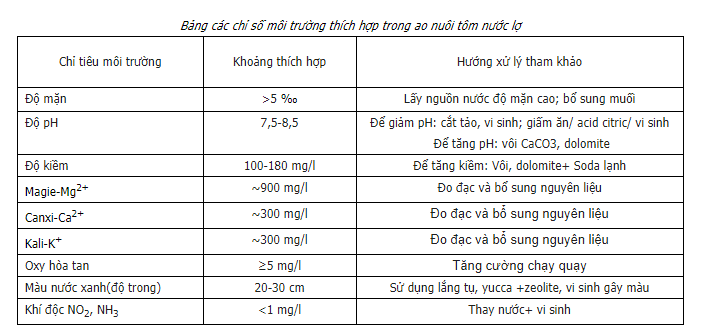 Qua môi trường nước: hàm lượng khoáng bổ sung phụ thuộc 2 yếu tố 1 tỉ lệ khoáng chất, 2 độ mặn của nước. Tỉ lệ khoáng chất phù hợp cho tôm nuôi là: