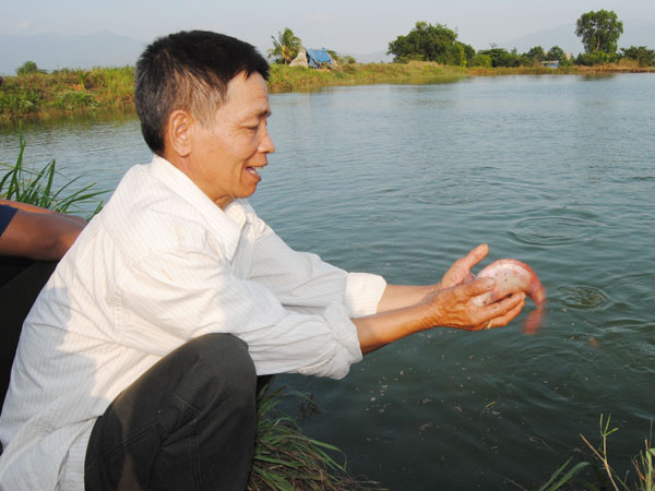 Nuôi cá trong ao nước lợ (15%o) điện tích 4.000m2 cỡ cá 3 – 5 cm thả 10.000 con/ ao, cho cá ăn thức ăn công nghiệp. Thu