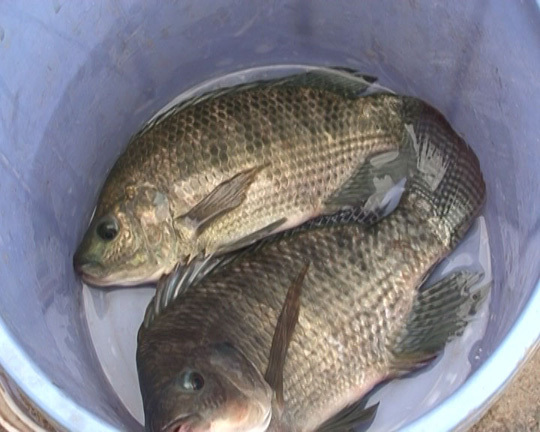 Thức ăn thủy sản được nhà nuôi trồng trộn cùng chiết xuất thảo dược trong thời gian nhất định. Người nuôi cho cá rô phi ăn thức ăn hỗn hợp với 3 cử/ ngày.