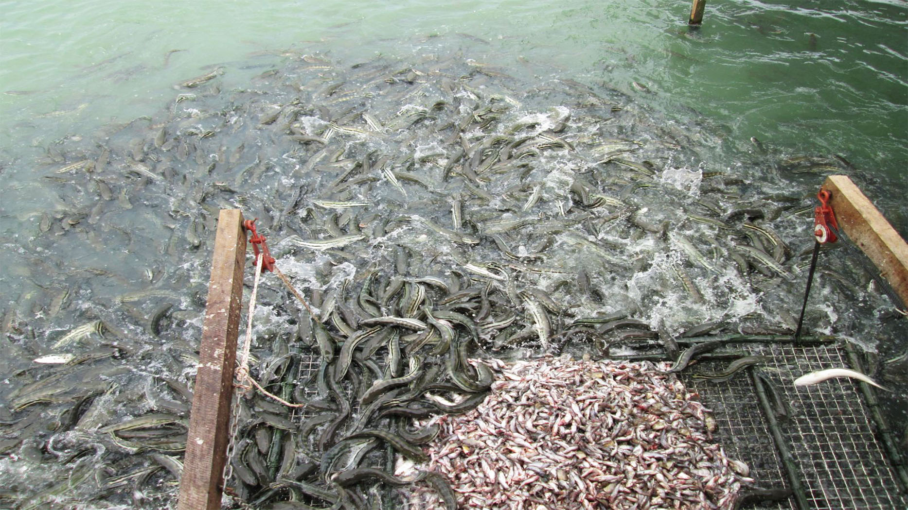 - Dụng cụ cho cá ăn là sàn tre đan lưới hơi thưa và nhẵn được đặt xăm xắp nước, chung quanh sàn có gờ chắn để thức ăn không bị tuột trôi ra ngoài, đồng thời cũng giúp cá ăn từ dước lên trên mặt sàn.